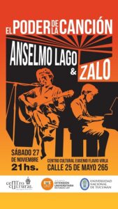 Este sábado, desde las 21, en el Centro Cultural Virla de la Universidad Nacional de Tucumán, tendrá lugar la presentación del espectáculo titulado “El poder de la canción”, a cargo del destacado músico Anselmo Lago, quien será secundado por Zalo.