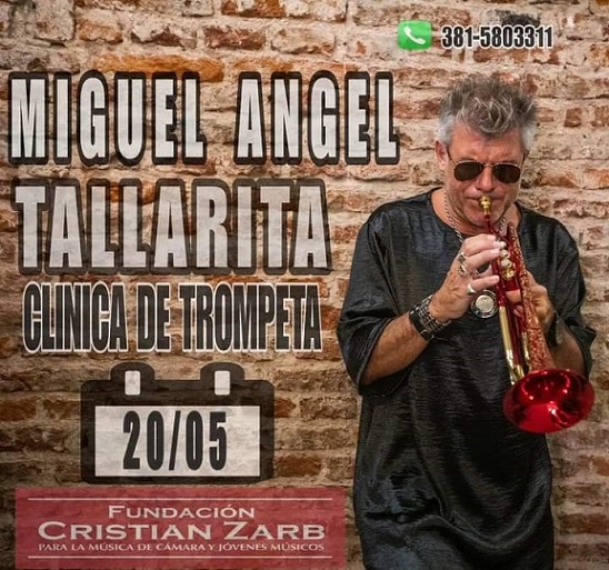 Por Fabián Seidán de Diario Cuarto Poder. Miguel Ángel Tallarita dará este sábado 20, por la tarde, una clínica de trompeta en Tucumán, evento organizado por la Fundación Cristian Zarb. Por la noche, participará también de un show con la Banda Musical Municipal en Tafí Viejo. Parte de su infancia la pasó en Tucumán.