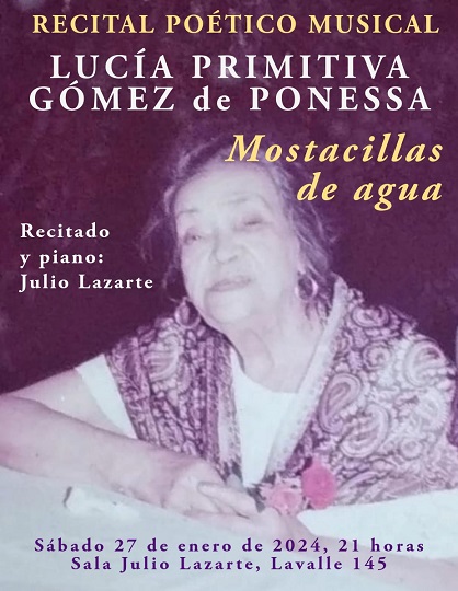 La voz del Maestro Julio Lazarte será el vehículo sonoro en el que se difundirán las obras “La fuente de Medusa”, de Manuel Rivas; “Poemas de Lodebar”, de Sergio Lizárraga; y “Mostacillas de agua”, de Lucía Primitiva Gómez de Ponessa.