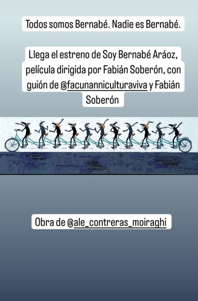 —La canción se llama “Soy Bernabé” y la realizamos junto a Pablo Santi, porque la letra es mía y la música es de él. Fue compuesta en 2023, como parte del proceso integral de realización que tiene como estandarte principal a la película, pero también incluye otras producciones, como una obra de teatro de mi autoría que está inédita y que en algún momento subirá a escena. Tanto la obra de teatro, que escribí en el marco de la composición del guión y después del rodaje de la película, junto con la canción, forman parte de este proceso de creación de “Soy Bernabé Aráoz”.