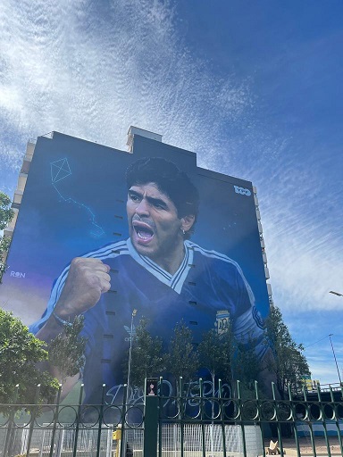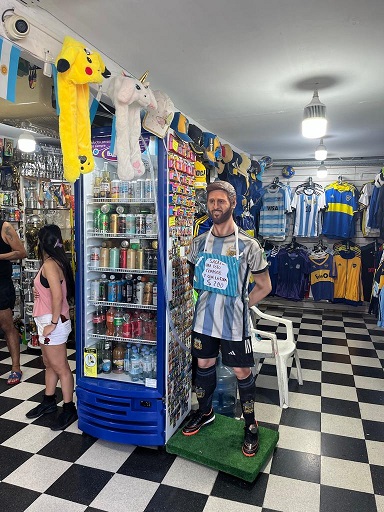 El país tiene su huella digital maradoneana por donde se camina: gigantografías en los edificios, y el rostro de Messi es multiplicado hasta el infinito en medias, llaveros, postales y afiches pegados en las calles.