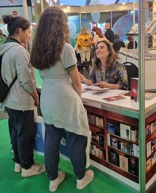 Romi Carrizo firmó ejemplares de su libro “Universos del corazón” y exhibió su nueva obra, “A flor de piel”. La autora conversó con jóvenes lectores que se interesaron por sus libros y despejaron inquietudes.