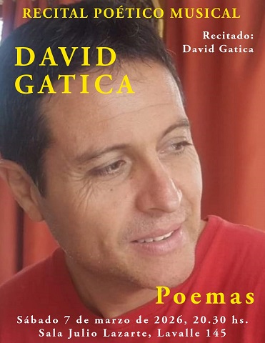 - Poemas”, de David Gatica. A las 20.30, en Sala Lazarte, Lavalle 145 de San Miguel de Tucumán. Recitado: David Gatica.