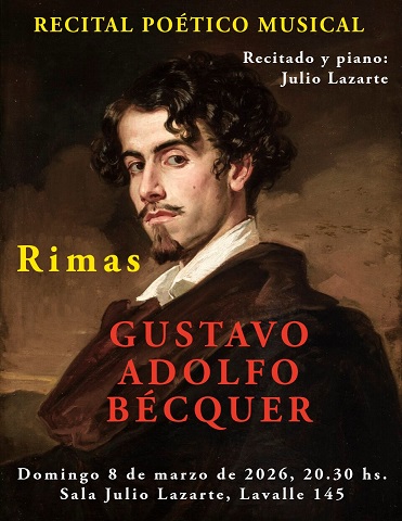 - “Rimas”, de Gustavo Adolfo Bécquer. A las 20.30, en Sala Lazarte, Lavalle 145 de San Miguel de Tucumán. Recitado y piano: Maestro Julio Lazarte.