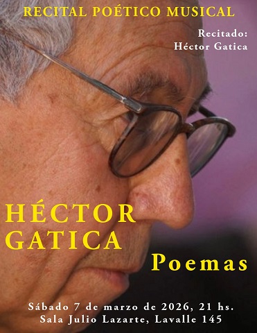 - “Poemas”, de Héctor David Gatica. A las 21, en Sala Lazarte, Lavalle 145 de San Miguel de Tucumán. Recitado: Héctor David Gatica.