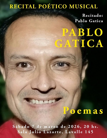 - “Poemas”, de Pablo Gatica. A las 20, en Sala Lazarte, Lavalle 145 de San Miguel de Tucumán. Recitado: Pablo Gatica.