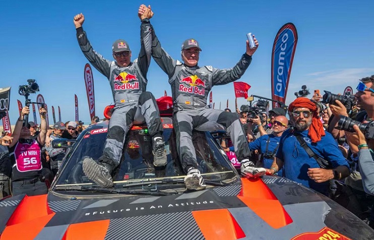 Carlos Sainz, con sus 61 años a cuestas, se erige como la viva imagen de que la edad es solo un número. La flor de la madurez luce en su pecho con el orgullo de quien ha conquistado las arenas del Dakar por cuarta vez, bajo el estandarte de la escudería Audi. Se convierte en el piloto más veterano en ganar esta competición, récord que él mismo estableció en su último triunfo. Este Touareg supone un capítulo más en un relato que ya contemplaba glorias pasadas obtenidas en las ediciones de 2010, 2018 y 2020. Un capítulo con historia al convertirse, junto a su copiloto Lucas Cruz, en el primer piloto que ha convertido un coche híbrido en campeón del Dakar. El piloto madrileño pilota el Audi RS Q e-tron, un coche que monta un motor eléctrico en cada eje y uno de combustión interna, una de las apuestas tecnológicas más arriesgadas de la historia del raid. Por el momento no es posible que un coche solo eléctrico supere determinadas etapas de dureza extrema.