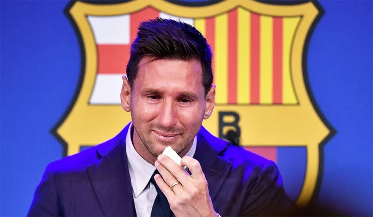 Sin asiento, de pie delante del atril. Botellita de agua colocada debajo para cuando la emoción lo superase o los labios se le resecaran. Y lágrimas. Lágrimas que tal vez no se le hayan visto ni en sus derrotas más duras dentro del campo. Lágrimas de tristeza porque “esta vez sí quería” quedarse. Lionel Messi se despidió del FC Barcelona como nunca se lo vio.
