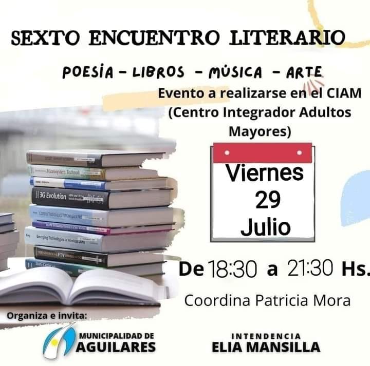 Una sana costumbre / Hoy se llevará a cabo el 6° Encuentro Literario Aguilares 2022, con diversas actividades relacionadas a poesía, libros, música y arte. El ciclo es coordinado por la escritora Patricia Mora y organizado por la municipalidad de Aguilares, a través de su intendente Elia Mansilla.
