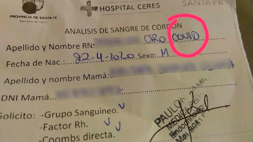 Así lo decidió una familia para bautizar al nuevo integrante que llegó al mundo el miércoles pasado, en el Hospital Regional de Ceres. “Ciro Covid S…”, dice la partida de nacimiento del pequeño. La inscripción, claro, hace referencia a la enfermedad que causa la pandemia del coronavirus.