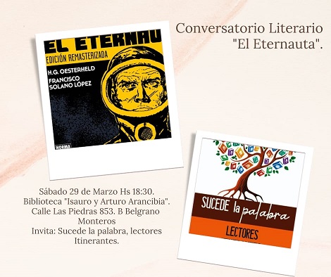Los integrantes del Conversatorio Sucede la Palabra, Lectores Itinerantes, invitan a la comunidad a participar del Conversatorio Literario sobre “El Eternauta”, que se realizará el próximo sábado 29 de marzo en la ciudad de Monteros.