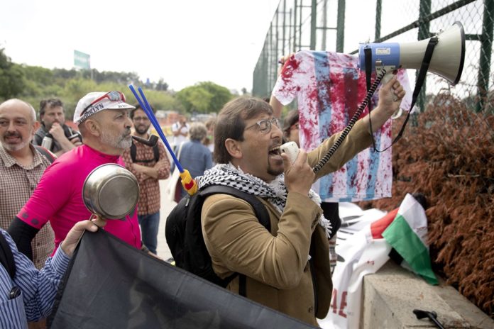 La agrupación “Prou Complicitat amb Israel” convocó a la marcha por Facebook bajo el lema “Vine a agredir la decisión de Messi y la selección argentina” y Provincia 25, con Flavia D’Amico, habría coordinado la convocatoria mediante las redes desde Nueva York, según investigan ahora en el gobierno nacional.