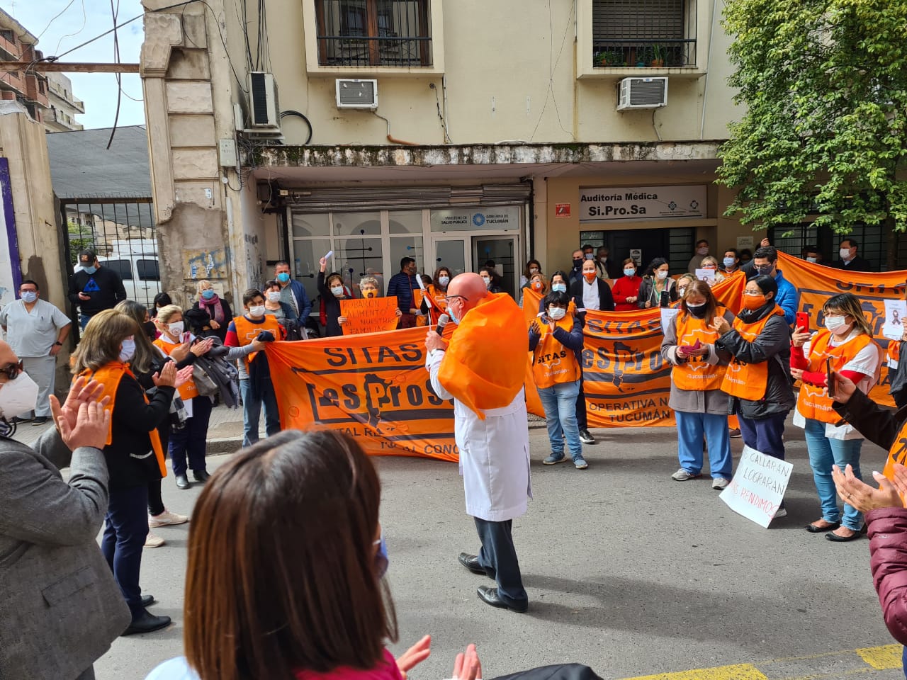 En medio de un clima de pandemia y teniendo en cuenta que sacrificio que vienen realizando los empleados de la Salud en nuestra provincia, representantes del Sindicato de Trabajadores Autoconvocados de la Salud de Tucumán (SITAS), se manifestaron frente al SIPROSA para reclamar y pedir la restitución del dinero descontados en los haberes.