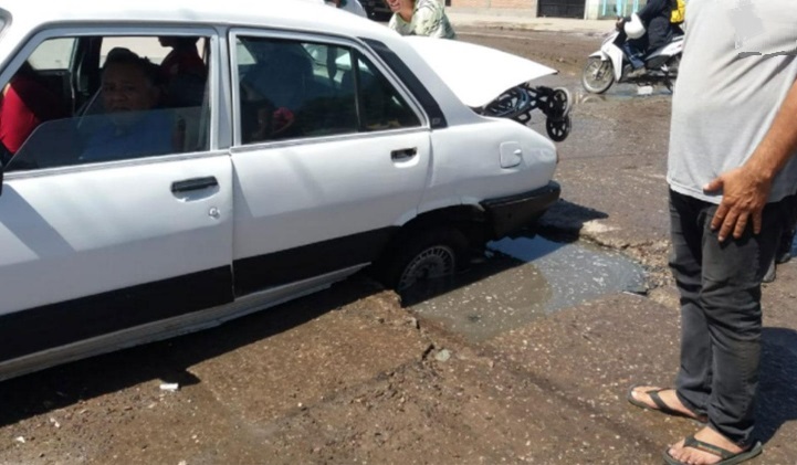 Todas las calles están rotas, algunas con baches pequeños, otras con cráteres, otras mal arregladas, en fin, rotas al fin, lo que no sólo perjudica a los conductores de vehículos sino también a los peatones. A los conductores, porque terminan rompiendo el tren delantero y las ruedas de sus autos; y a los peatones por la imposibilidad de cruzar la calle y, cuando llueve terminan “bañados” por el agua servida que les salpican los vehículos al pasar.