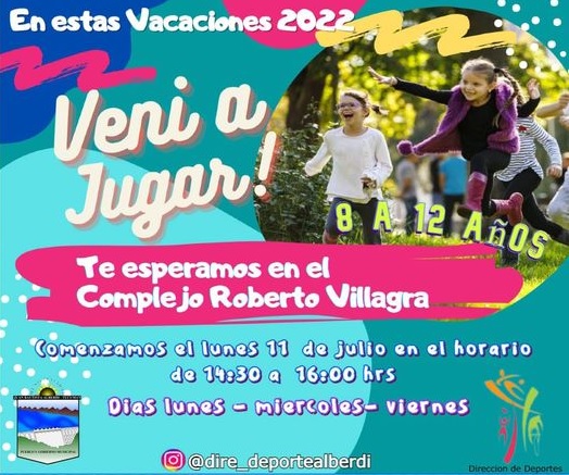 Se acercan las vacaciones de invierno y desde la Dirección de Deporte de la Municipalidad de Juan B. Alberdi, proponen una gran variedad de actividades a partir del 11 de Julio en el horario de 14:30 a 16:00 Hs en el Complejo Roberto Villagra.