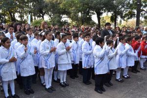 “Hoy estas criaturas prometieron querer, cuidar y respetar la emblema nacional, acompañados por su familia pero de alguna manera a través de ellos todos renovamos fidelidad”, señaló el gobernador. Recalcó que esta promesa implica “revivir la esperanza de un futuro próspero, mirar hacia adelante con optimismo y alegría porque lo que viene va a ser mejor”. El jefe provincial destacó a los excombatientes de la guerra de Malvinas, luego de que diez de ellos cumplieron con la tradicional jura a la Bandera argentina.