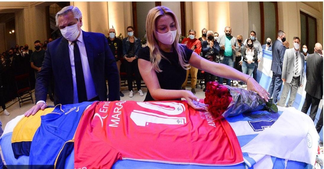Además de las dos coronas que envió Fernández, Presidencia informó que también se recibieron de la Asociación Argentina de Arbitros, trabajadoras y trabajadores de la ANSES, el Movimiento Evita, FOETRA, el Club Barcelona, la 12 y el intendente de Lanús, Néstor Grindetti, entre otras.