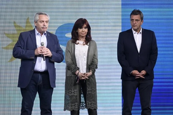 El jefe de Estado subió al escenario pasadas las 23.40 acompañado de la vicepresidenta Cristina Fernández de Kirchner. Junto a las dos principales figuras del gobierno, también se encontraban el presidente de la Cámara de Diputados, Sergio Massa, el gobernador de la Provincia de Buenos Aires, Axel Kicillof, el jefe del bloque del FdT en Diputados, Máximo Kirchner, y los precandidatos bonaerenses y porteños, Victoria Tolosa Paz, Daniel Gollan, Leandro Santoro y Gisela Marzziota.