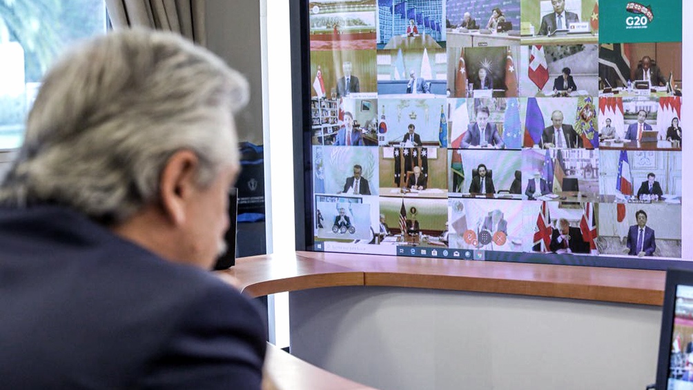 El presidente Alberto Fernández convocó a los líderes del G20 a suscribir un “gran pacto de solidaridad global” y, en ese plano, crear un Fondo Mundial de Emergencia Humanitaria con el fin de contribuir a enfrentar la pandemia del coronavirus, bajo el principio de que “nadie se salva solo”.