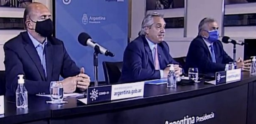 El gesto de los tres gobernadores y el Presidente en el anuncio oficial cristalizó la previa videoconferencia que Alberto Fernández había mantenido con 24 gobernadores y que buscó ponerse al frente la nueva etapa de lucha contra el COVID-19 que se está dando ahora en el interior del país.