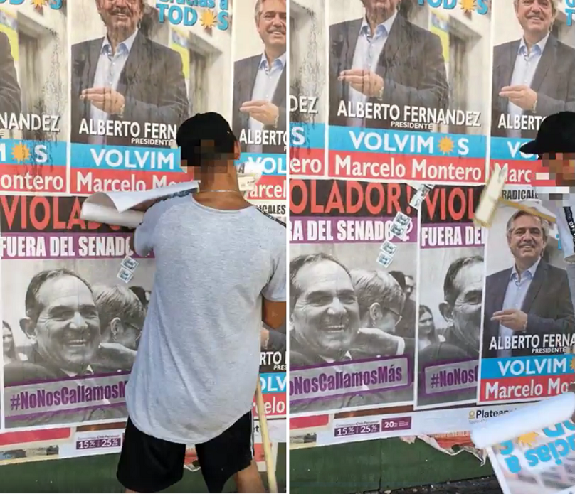 Alguien de “poder”, mucho poder, mandó a tapar los afiches que muestran “al monstruo debajo de la cama” como lo nombró la víctima en la misiva que entregó a la Justicia y que se hizo pública.