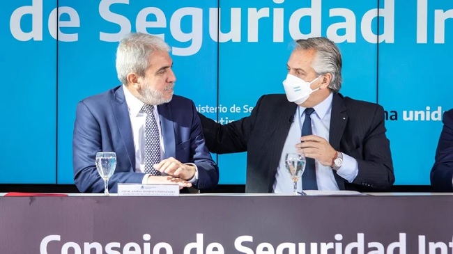 “Es un gesto de autoridad histórico. Las políticas las fija el Presidente, si hay alguien pone palos en la rueda debería correrse y trabajar en otro lugar”, definió el funcionario al mando de las fuerzas federales. También, se expresó sobre la puja electoral del año que viene, que ya se expresa en diferentes movimientos y declaraciones políticas: “Alberto va a ser candidato (para la reelección)”, aseguró. Ante una repregunta sobre qué pasaría si Cristina Kirchner también busca una candidatura, agregó: “Que se presente y compita”.