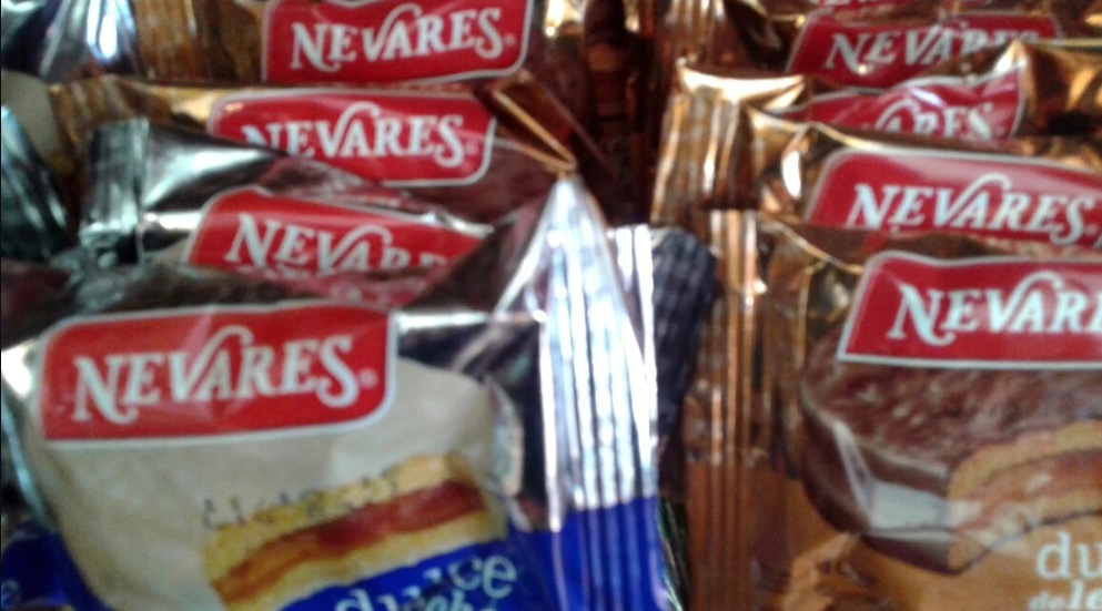 La Administración Nacional de Medicamentos, Alimentos y Tecnología Médica (ANMAT) prohibió a través de la disposición 7894/2019 la comercialización en todo el territorio nacional de ciertos lotes de los productos: “mini torta sabor chocolate rellena con dulce de leche y mousse sabor a vainilla cubierta con baño de repostería” marca Nevares, nombre de fantasía Chocoblok; “oblea con relleno sabor a vainilla cubierta con baño de repostería”, marca: Nevares, nombre de fantasía: Crocbar; “oblea con relleno tipo mousse sabor de chocolate y maní con baño de repostería”, marca: Smack; “oblea rellena con pasta a base de azúcar y leche con sabor a vainilla, arroz inflado, cubierta con baño de repostería”, marca: Nevares, nombre de fantasía: Swiss roll; “alfajor relleno con dulce de leche recubierto con baño de repostería fantasía blanco”, marca: Genio; “alfajor con relleno a base de cacao cubierto con baño de repostería, fantasía blanco”, marca: Mogy; “alfajor relleno con pasta de marroc”, marca: Fulbito; “oblea rellena con crema de maní cubierta con baño de repostería”, marca: Nevares y “turrón de maní recubierto con oblea con baño de repostería”, nombre de fantasía: Fantasía, marca Nevares.