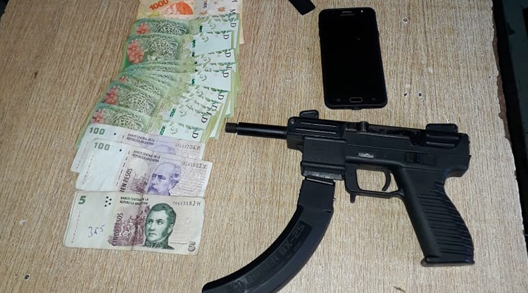 Al realizarse la requisa correspondiente lograron secuestrar  una pistola ametralladora calibre 22 milímetros largo con dos proyectiles, un teléfono celular y  una suma cercana a los $10 mil.