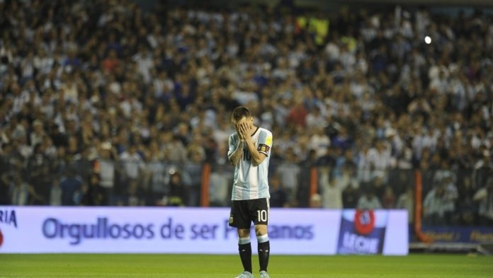 Se lamenta. Messi no puede creer lo que vive en la Bombonera. (Foto Maxi Failla)
