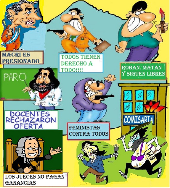 Dibujo tomado de internet sobre los conflictos en el país: paros, motochorros, ultra-feminismo, malos jueces, etc, etc.