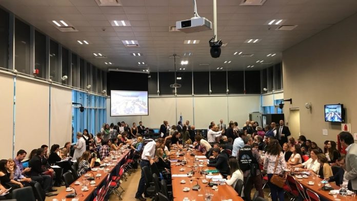En medio de un fuerte operativo de seguridad, más de un centenar de legisladores se reúnen en el anexo “C” de la Cámara baja. El diputado del PRO Daniel Lipovetzky -presidente de la comisión de Legislación General y uno de los impulsores de la despenalización– está a cargo de la conducción del encuentro, del que también participarán las comisiones de Legislación Penal, Familia y Salud.