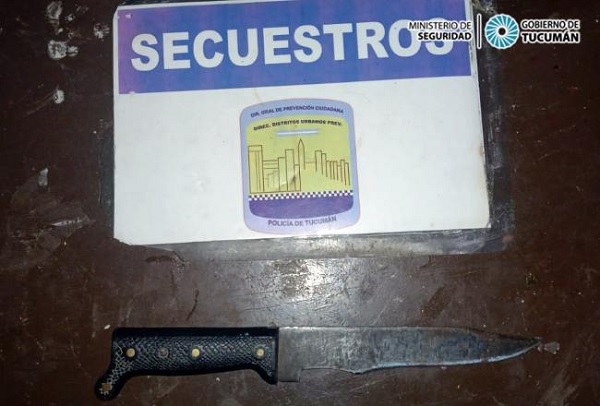 Durante la requisa, el sospechoso se abalanzó sobre los servidores públicos intentando atacarlos con el arma pero fue rápidamente reducido y trasladado a la delegación policial donde se inició la averiguación de su prontuario policial en tanto que el elemento punzo-cortante quedó en calidad de secuestro.