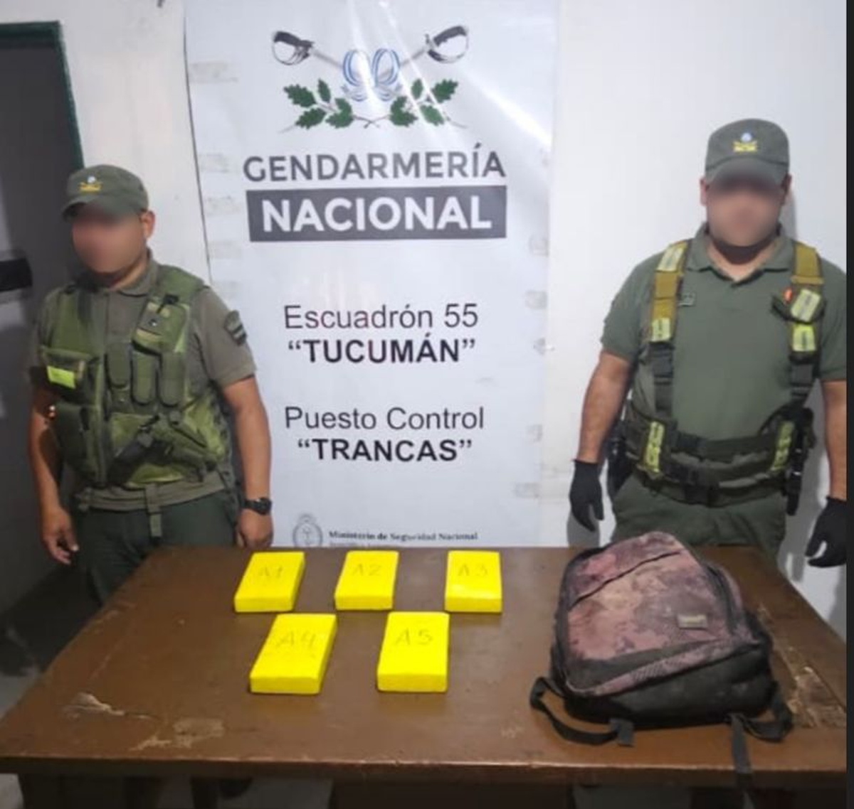 Sobre la Ruta Nacional Nº 9 (kilómetro 1.358), a la altura del Paraje Molle Yaco, efectivos dependientes del Escuadrón 55 “Tucumán”, fueron alertados por los constantes ladridos de canes pertenecientes a las fincas ubicadas en la parte posterior del Puesto de Control “Trancas”.