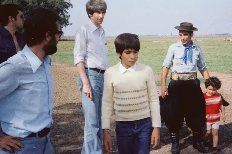 Juan Pérez a los 14 años junto a su padre, su hermano más chico, el famoso astrofísico Jacques Valée y un investigador.