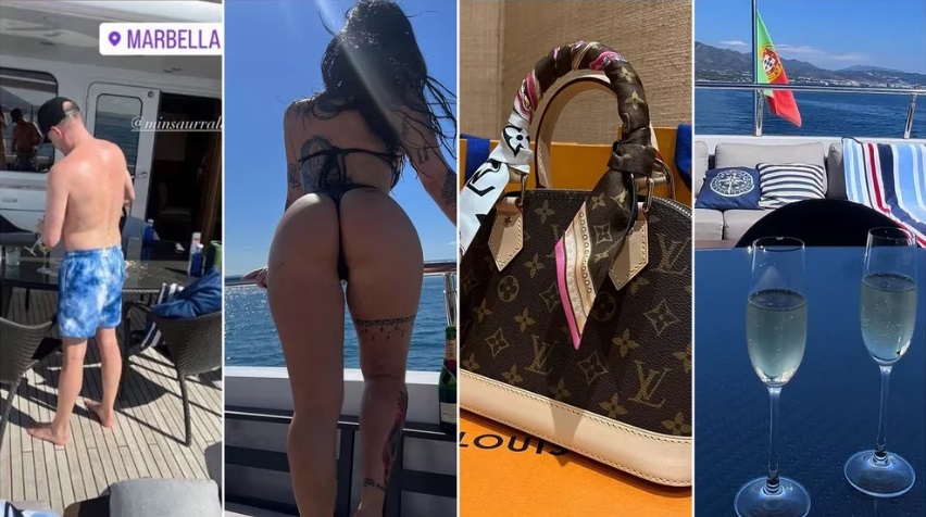 Parte de las imágenes posteadas por Clérici que provocaron el escándalo.En las imágenes que posteó la modelo en sus redes sociales en medio de su viaje a Marbella, se veían joyas, una cartera de una reconocida marca internacional y un reloj valuado en 8 mil dólares.