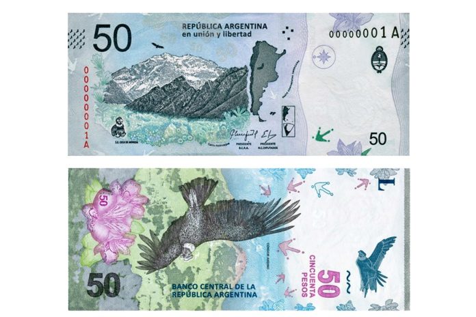 El Banco Central (BCRA) lanzó el nuevo billete de $50, que comenzará a circular a partir de mañana. El nuevo diseño, que se incorpora a la familia con animales autóctonos que está siendo introducida desde 2016, lleva la imagen de un cóndor, el ave emblemática de la cordillera andina y las sierras vecinas.