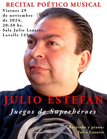 - Viernes 29 de noviembre, desde las 20.30, “Juegos de superhéroes”, de Julio Estefan. Recitado y piano: Julio Lazarte.