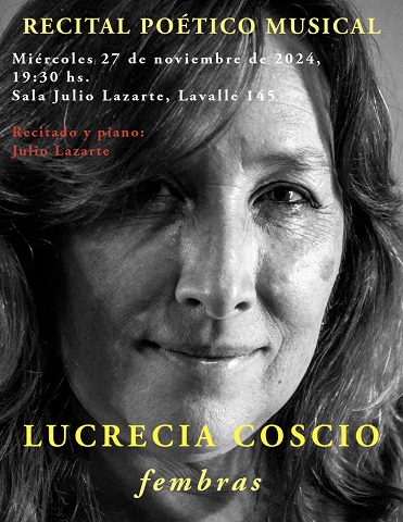 - Miércoles 27 de noviembre, desde las 19.30, “Fembras”, de Lucrecia Coscio. Recitado y piano: Julio Lazarte.