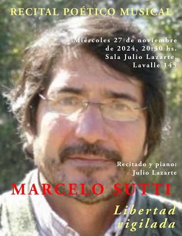 - Miércoles 27 de noviembre, desde las 20.30, “Libertad vigilada”, de Marcelo Sutti. Recitado y piano: Julio Lazarte.