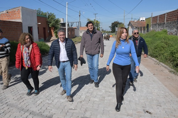 La intendenta Marta Najar supervisó los trabajos de adoquinado en la calle 14.