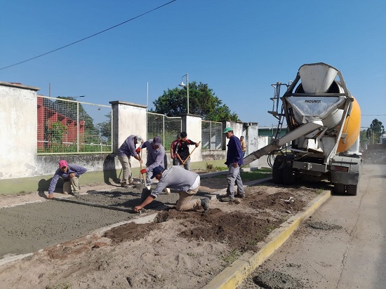 En inmediaciones de la escuela Técnica, se continúa con paseo peatonal, lugar donde se hormigonó dando continuidad a esta obra que va por calle Catamarca a Lidoro Quinteros.