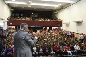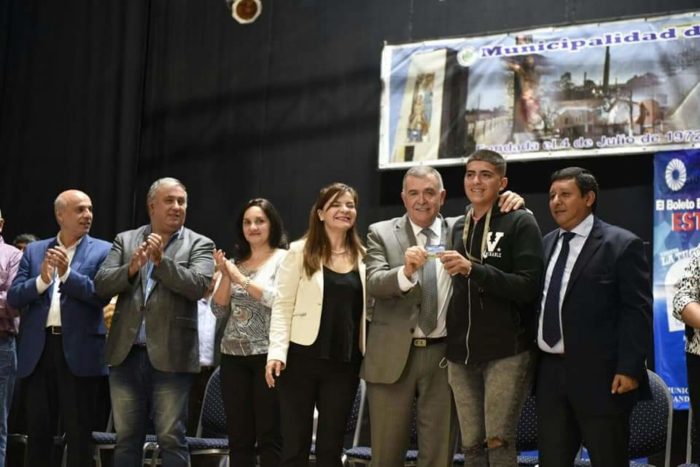 El vicegobernador a cargo del Poder Ejecutivo, Osvaldo Jaldo, en el Teatro Alfredo Guzmán de Banda del Río Salí, entregó 153 tarjetas magnéticas, correspondientes al Boleto Estudiantil Gratuito, a alumnos de la Escuela Secundaria de Banda del Río Salí y 387 tarjetas a alumnos de establecimientos educativos de San Miguel de Tucumán.