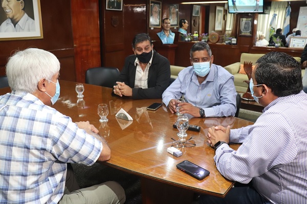A primera hora de esta mañana el intendente Darío Monteros recibió en su despacho al encargado de la Dirección Provincial del Agua, Arq. Juan Saravia, para coordinar acciones de trabajo conjunta que den una pronta solución a la falta y escasez del suministro del agua en algunos sectores del ejido municipal. En este encuentro también estuvo presente el Coordinador Gral. del Municipio, Miguel Vázquez.