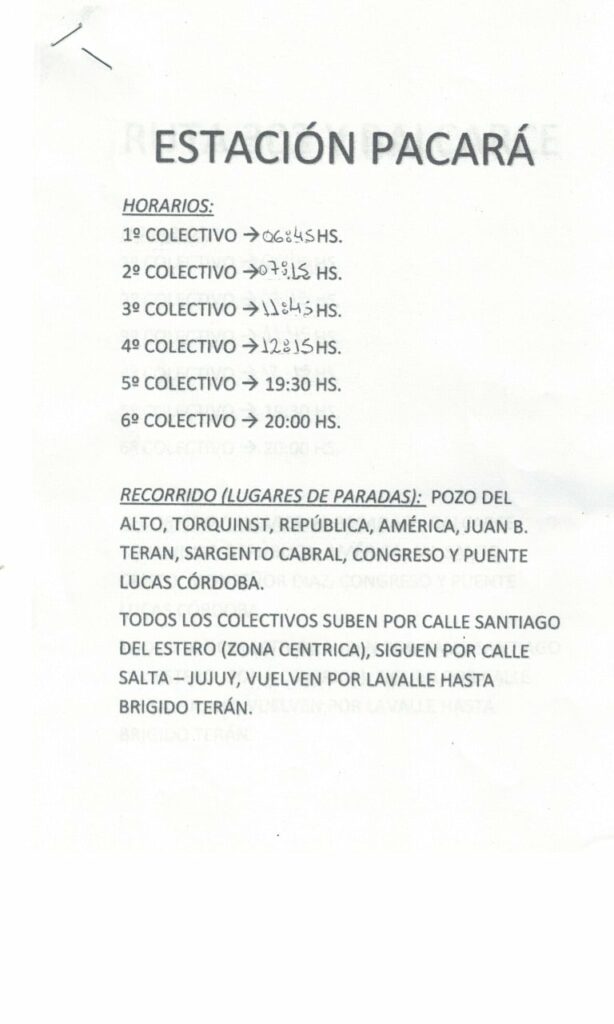 Hugo Soraire afirmó que el servicio comenzará a funcionar mañana a las 6.45 hs partiendo desde: ESTACIÓN PACARÁ, RUTA 302 Y BALCARCE, RUTA 9 Y EVA PERÓN, RUTA 302 Y RUTA 304, RUTA 9 Y RUTA 306. Además, agregó que cada colectivo contara con la presencia de un vigía ciudadano que colaborara con el cumplimento de las medidas sanitarias para continuar con el cuidado de la salud de toda la comunidad.
