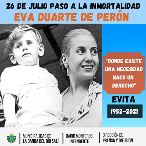 Tras cumplirse casi 70 años del paso a la inmortalidad de quizás la mujer más importante de la historia argentina, el municipio recordó esta fecha tan importante.