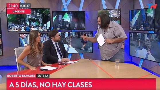En medio del conficto docente, Roberto Baradel se enojó en Todo Noticias cuando le preguntaron si era docente y se retiró del estudio.