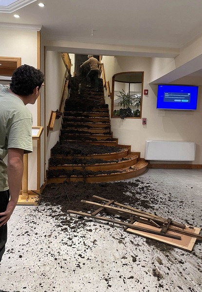 La fiscal Cendón, que visitó el hotel, declaró que el lugar se encontraron con tierra “desde el piso hacia el techo de las habitaciones”.