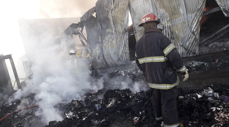 El incendio se originó en un galpón que funciona como depósito de productos químicos de la industria textil. Peritos de la Dirección General de Bomberos de la Policía, que está a cargo del comisario Martín Aguilar, trabajan en el lugar para tratar de establecer las causas del siniestro que sólo produjo daños materiales
