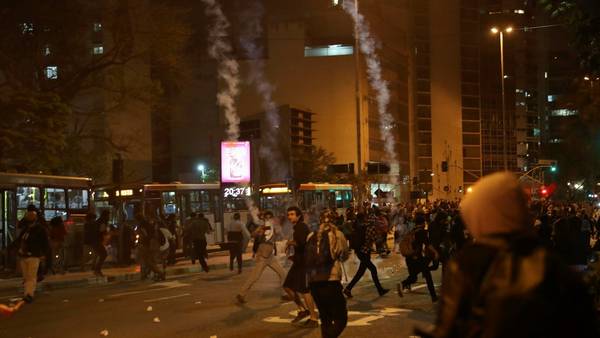 Los primeros enfrentamientos se produjeron en el centro de San Pablo, donde las fuerzas de seguridad utilizaron bombas de estruendo contra manifestantes que arrojaban piedras a la policía. El diario Folha de Sao Paulo fue blanco de ataque por parte de un grupo de manifestantes que arrojaron piedras contra el edificio e intentaron ingresar a la redacción por la fuerza. Las puertas del periódico fueron pintadas con la palabra “golpista”. Imágenes de la televisión mostraban corridas y permitían escuchar detonaciones de las armas de la policía.