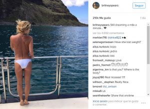 Además, la propia artista publicó una foto en su cuenta de Instagram donde simula estar realizando un topless, aunque se observa que está sosteniendo la parte superior de la bikini. Sus seguidores no tardaron en halagarla y dejarle sus “me gusta”.